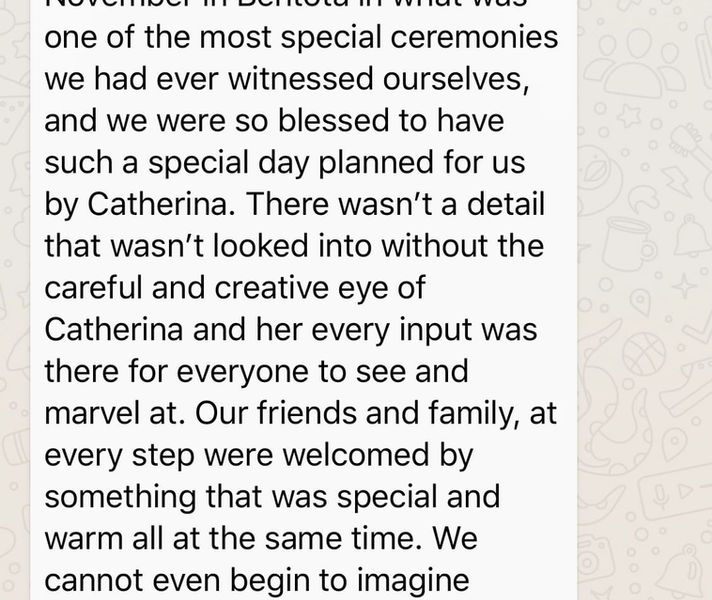 Feedback from the bride’s mother: “Thanks Catherina for making their day so special and for all of us.”